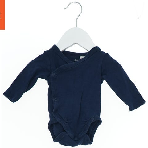 Bodystocking med lange ærmer i blå farve. Den har en wrap-around lukning foran med trykknapper, hvilket gør det nemt at klæde barnet på. Ideel til babyer og småbørn. Lavet af H&M med økologisk bomuld.