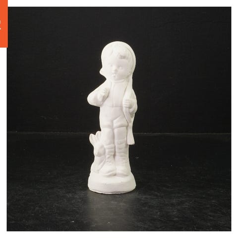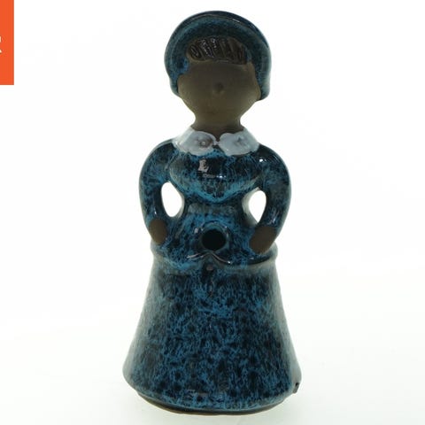 Keramikfigur af et par der står tæt sammen. Figurerne er i brun og rød glasur og holder en dekorativ buket blomster. Den er 15 cm høj og har en unik design mærket 'Rosenthal' på bunden.
