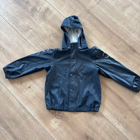 Lang regnjakke med pletter fra Mikk-line (str. 134)