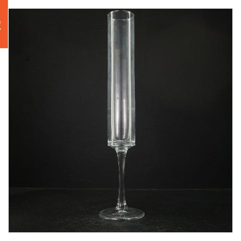 Dette er en cylindrisk vase lavet af gennemsigtigt glas. Den er 28 cm i længden og har en diameter på 8 cm. Vasen er enkel i design og kan bruges til blomster eller som dekoration i en bolig.
