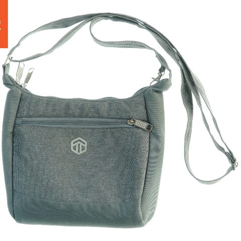 Skuldertaske med justerbar rem og flere lynlåslommer.