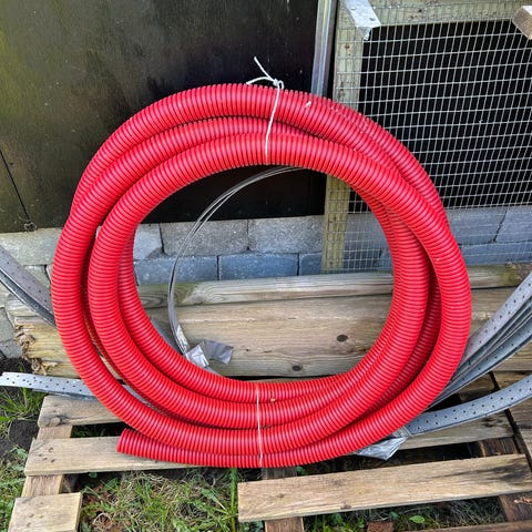 Ribbet plast rør i to farver, blå og orange. Rørene fremstår som fleksible eller let bøjelige og er egnede til fx føring af kabler, dræn eller ventilation, afhængigt af dimensioner og godkendelser. Kan anvendes i byggeri eller installationer, hvor der er behov for ribbede plast rør i disse farver. Nærmere mål og specifikationer bør kontrolleres ved fysisk opmåling.