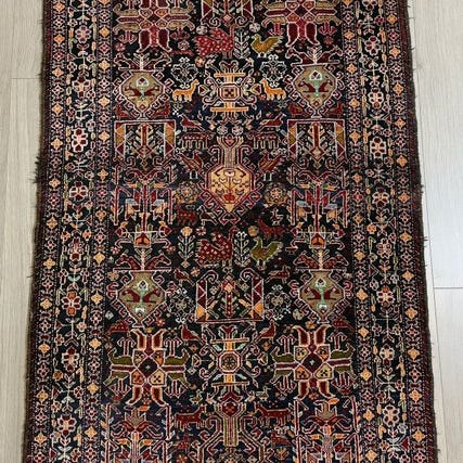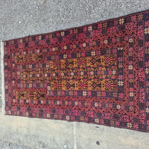 Antikt afghansk Balutsch tæppe, håndvevet i Afghanistan i midten af det 20. århundrede, uld på uld, flerfarvet, 152 × 94 cm, cirka 5 kg, i god stand. Klik på den blå "gå til varen" knap, for at købe eller byde på denne vare. Den samlede pris vil blive vist inden du afgiver dit bud.