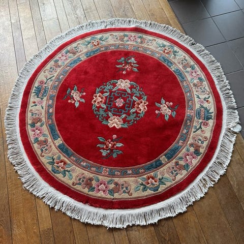 Vævet i uld af høj kvalitet på bomuldsbasis, har disse stykker en tæt, kompakt og meget stram struktur, og de er desuden tunge for deres størrelse, som er karakteristiske for produktionen Peking fra midten af det 20. århundrede. De er i fremragende stand, uden pletter eller strukturelle skader. Kun en let rengøring anbefales for at friske farverne op og fremhæve