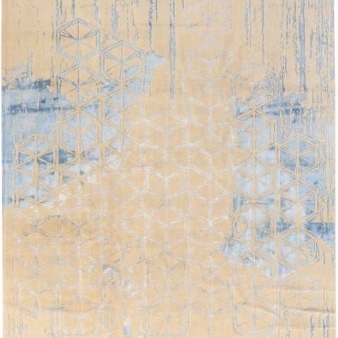 Denne ekstraordinært elegante designervævede tæppe imponerer med et fint, detaljeret floralt ornamentdesign, der minder om klassiske hof- og palastæppetæpper – men i en moderne, lys farvepalette af sølv, isblåt og creme. Gennem sin bløde, næsten skimrende udstråling egner det sig perfekt til luksuriøse opholdsstuer, elegante soveværelser eller repræsentative receptionsområder.
