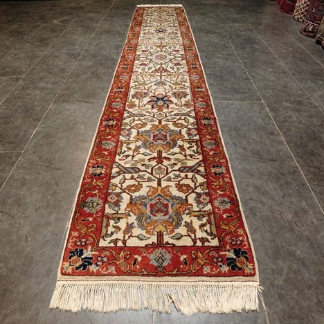Oprindelse: Rumænien; tæbriz-inspireret tæppe med høllandsuld på bomuld, måler 212 cm x 77 cm, generelt i god stand med ældre og slidspor og med ægthedscertifikat. Klik på den blå "gå til varen" knap, for at købe eller byde på denne vare. Den samlede pris vil blive vist inden du afgiver dit bud.
