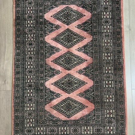Buchara art deco tæppe fra Pakistan, uld på bomuld, mål 157 cm x 96 cm. Klik på den blå "gå til varen" knap, for at købe eller byde på denne vare. Den samlede pris vil blive vist inden du afgiver dit bud.