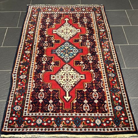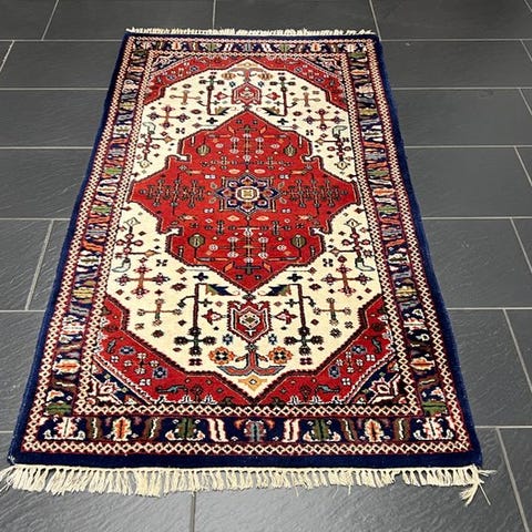 Oprindelsesland Indien; Model Heriz Art Deco; Håndvævet uld på bomuld; Mål 144×73 cm; 1 genstand; i god stand; ikke professionelt renset. Klik på den blå "gå til varen" knap, for at købe eller byde på denne vare. Den samlede pris vil blive vist inden du afgiver dit bud.