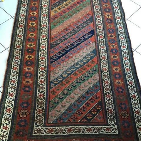 Den levende farvepalet med kraftig blå, varme røde- og orange nuancer samt lyse kontraster giver tæppet en særlig tilstedeværelse. De traditionelle ornamenter er ofte symbolsk præget og afspejler den kulturelle identitet i Kaukasusregionen.