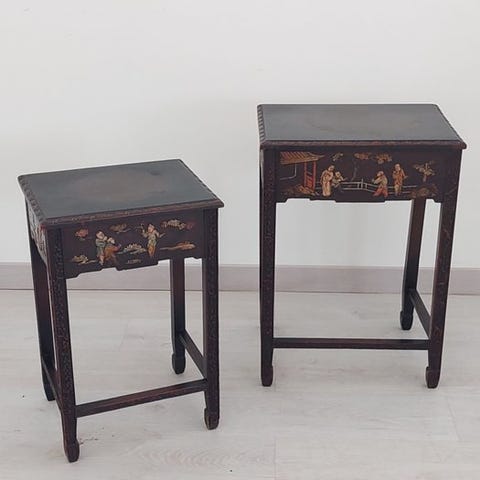 Kinesisk træskærmbord i dynastisk stil fra det 19. århundrede (ca. 1800–1850), 74 cm højt, 39 cm bredt og 39 cm dybt, i god stand. Klik på den blå "gå til varen" knap, for at købe eller byde på denne vare. Den samlede pris vil blive vist inden du afgiver dit bud.