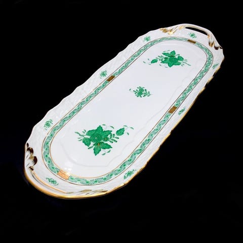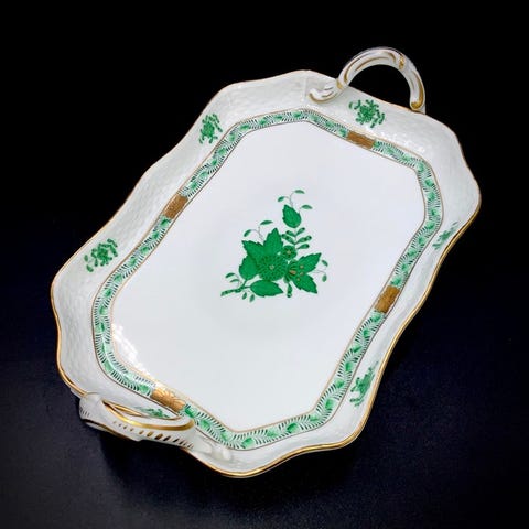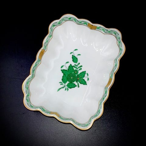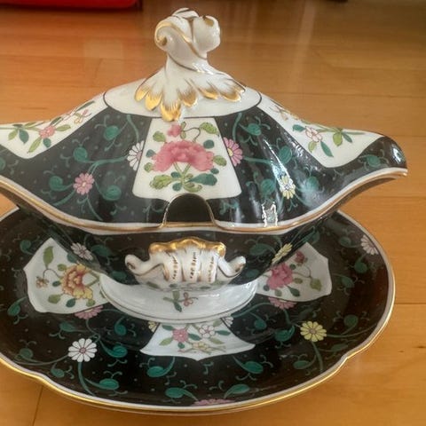 Herend - Exquisite Large Gravy Boat - "Chinese Bouquet Apponyi Green" - Sovse...