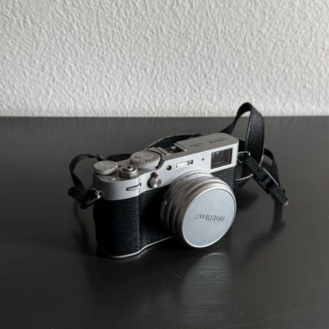 Fujifilm X-T100 i mørk sølv krop i meget god stand. Kameraet har små brugsspor. Kameraet leveres med batteri, oplader og bodycap