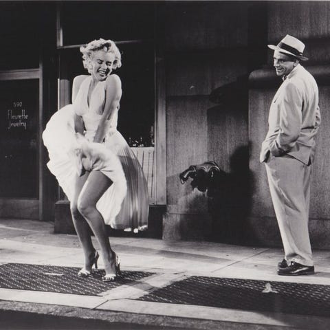Kontrasten mellem hendes nærvær og stationens anonymitet skaber en suggestiv effekt: Marilyn træder frem som en strålende figur midt i byens bevægelse og transit, hvilket bekræfter hendes naturlige karisma.
