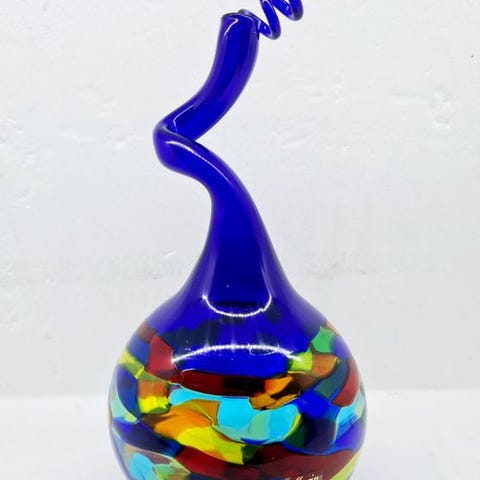 Begrænset edtion håndblæst glasvase fra Murano-designer A. Ballarin, leveret med certifikat for ægthed og farvekontrast; mål: højde ca. 18 cm, bredde ca. 10 cm, dybde 10 cm; fremstår som ny. Klik på den blå "gå til varen" knap, for at købe eller byde på denne vare. Den samlede pris vil blive vist inden du afgiver dit bud.