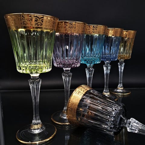 Sættet af 6 glas "goti de fornasa" udgør et enestående kunstværk, fremstillet, åbnet i hånden og mundblæst i mesterglaskunstnerens ovn.