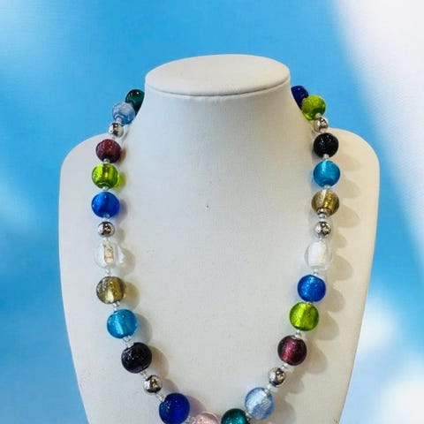 Elegant håndlavet halskæde i ægte Murano-glas, udtryk for den venetianske glastradition anerkendt internationalt.