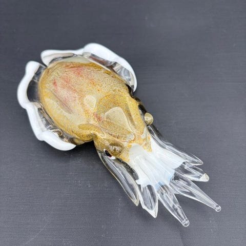 Stiliseret blå Murano-glass elefant med bladguld-finish, håndlavet, 19 cm høj, 9 cm bred og 5 cm dyb, lavet i Italien og i næsten som ny stand. Klik på den blå "gå til varen" knap, for at købe eller byde på denne vare. Den samlede pris vil blive vist inden du afgiver dit bud.