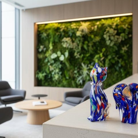 Blå stiliseret elefant med finish i guldblad helt håndlavet i Murano.
