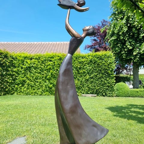 Billedet kommer særlig godt til udtryk i en luksuriøs haveomgivelse, for eksempel ved kanten af en dam eller iblandt grønne beplantninger, men er også velegnet til placering i et drivhus, galleri eller et rummeligt interiør. Patinaen udgør en harmonisk helhed med grønt og vand, hvilket giver billedet et naturligt og ældre udtryk.