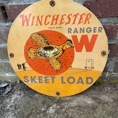 Remington emalje reklameskilt – Rabbit Hunting Ammunition, en reproduction fra USA fra 2000–2010, i god stand med mindre ældningstegn og pletter, 30 cm x 30 cm. Klik på den blå "gå til varen" knap, for at købe eller byde på denne vare. Den samlede pris vil blive vist inden du afgiver dit bud.