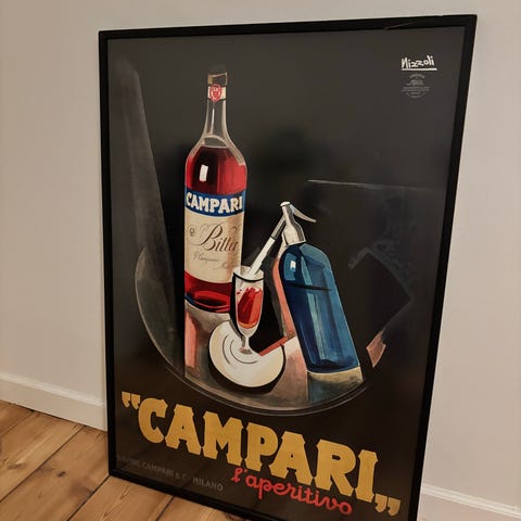 Typografisk tryk på en metalplade i smedet jern, Campari-reproduktion fra Italien i det 21. århundrede, måler 39 × 29 × 0,8 cm og er i ny tilstand. Klik på den blå "gå til varen" knap, for at købe eller byde på denne vare. Den samlede pris vil blive vist inden du afgiver dit bud.