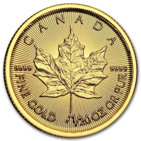 Canadiske Gold Maple Leaf-mønter betragtes som nogle af verdens smukkeste guldmønter. Disse guldborts- eller bullionmønter tiltaler investorer og samlere verden over på grund af deres skønhed og renhed. Disse canadiske guldbullion-mønter indeholder 1/20 oz af .9999 fint guld.