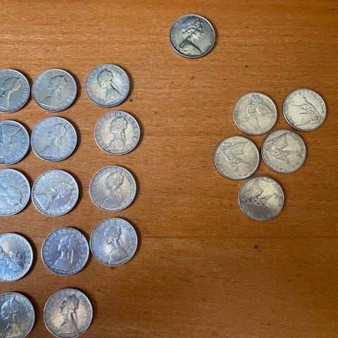 Lot af 47 sølvmønter fra forskellige år; se grundigt på billederne :