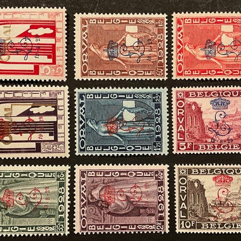 Belgien 1928 - Første Orval med påtryk Frimærkedagene i Antwerpen - OBP / COB...