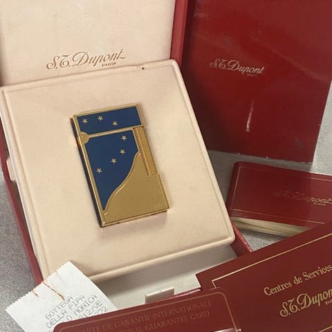 Lighteren er ny, tændt kun for at demonstrere funktionaliteten, begrænset udgave til 2575 stykker verden over, og dette har et særligt nummer, fordi det er nr. 2000/2575; komplet med alt, kasse, garanti, brochurer, kontroæske, rejsesætte i velour og originale etiketter. Hænger sammen med en meget betydningsfuld privat samling.