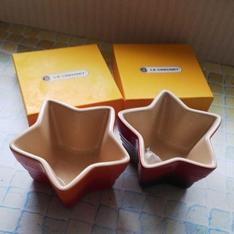 Hver cocotte måler ca. 10 cm i diameter og 5 cm i højden. Varerne er kun brugt én gang og står i meget god stand med minimale brugsspor. Der medfølger ingen originalæske.