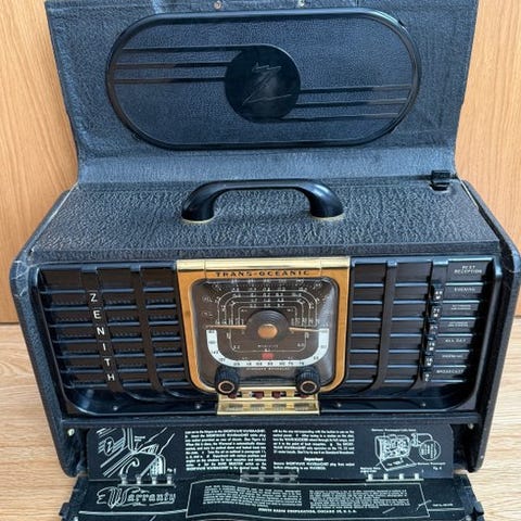 Her er en flot lille rørradio lavet i Frankrig i 1958. Den er i fremragende stand, som I kan se på de mange billeder, og som samler og tekniker er denne enhed fuldstændig gennemgået og fungerer perfekt, den modtager GO, PO, OC. Med en god antenne er lyden god om aftenen, og den revision der er foretaget, er diskret for at bevare autenticiteten af denne smukke radio. Det er en fem-rørs radio, og det magiske øje er meget lyst.