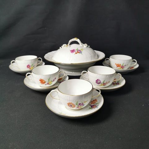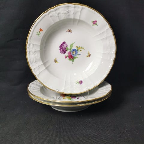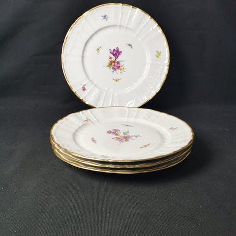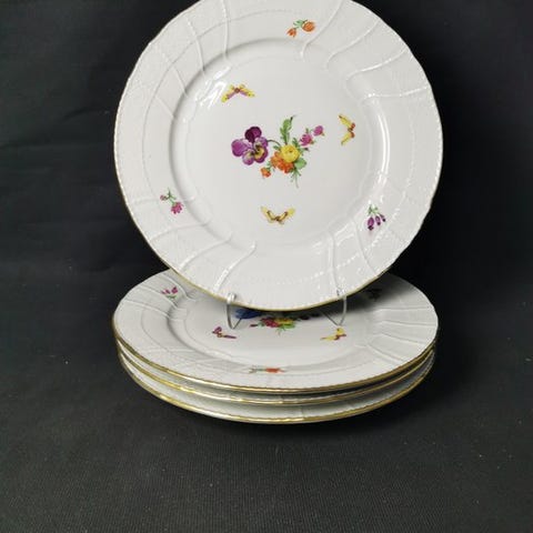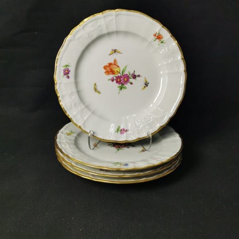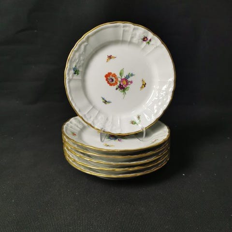 Velkommen! Vi præsenterer fem serveringsfade med blomstermotiv og sommerfugl fra KPM Berlin.