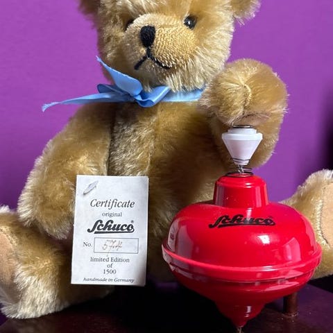 Educa D3 teddybjørn, lavet i Tyskland, mohair, 30 cm høj, fra perioden 1980–1990, i god stand, med emballage og mærkat. Klik på den blå "gå til varen" knap, for at købe eller byde på denne vare. Den samlede pris vil blive vist inden du afgiver dit bud.