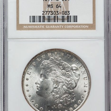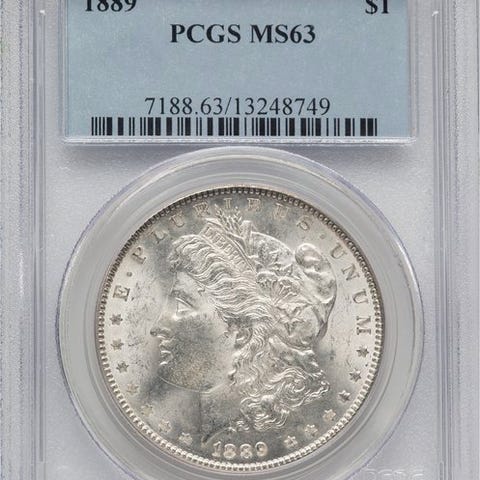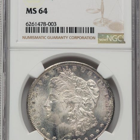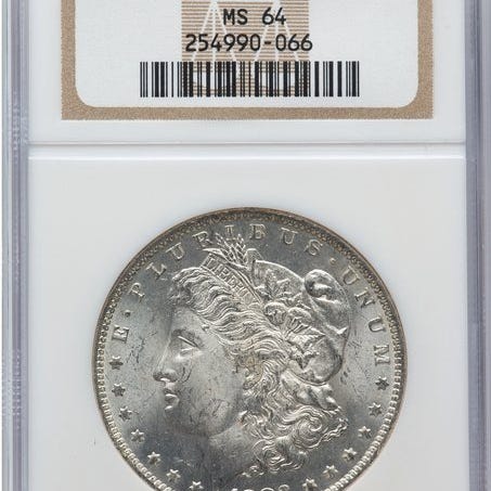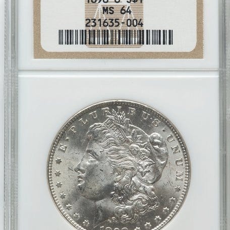 Forenede Staten Morgan-dollar, 1890, MS61 NGC-certificeret, præget i New Orleans, sølv. Klik på den blå "gå til varen" knap, for at købe eller byde på denne vare. Den samlede pris vil blive vist inden du afgiver dit bud.