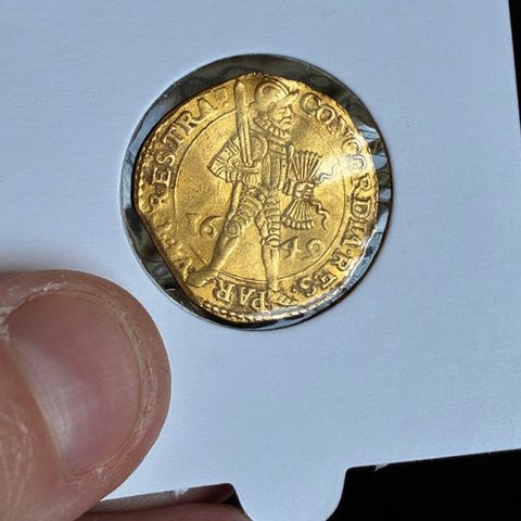 Gulddukat fra 1591, slået for provinsen West Friesland, vægt 3,45 g, ikke certificeret. Klik på den blå "gå til varen" knap, for at købe eller byde på denne vare. Den samlede pris vil blive vist inden du afgiver dit bud.