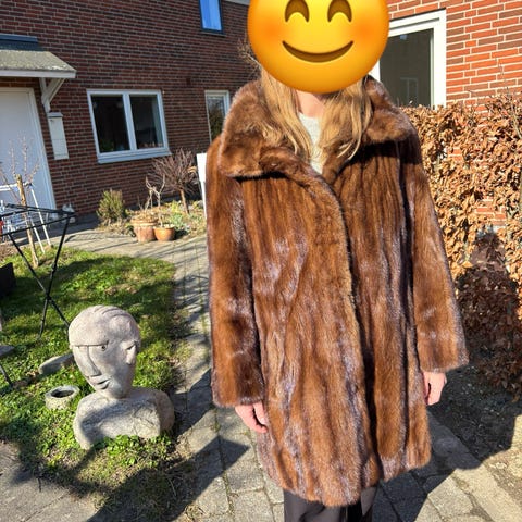Manzari dametil pelsjakke i gylden farve, størrelse FR 40, ny med tags, oprindelse Grækenland, samlet længde 64 cm, ærmelængde 60 cm, skulderbredde 44 cm, brystmål 50 cm, minkpels, ét stykke. Klik på den blå "gå til varen" knap, for at købe eller byde på denne vare. Den samlede pris vil blive vist inden du afgiver dit bud.