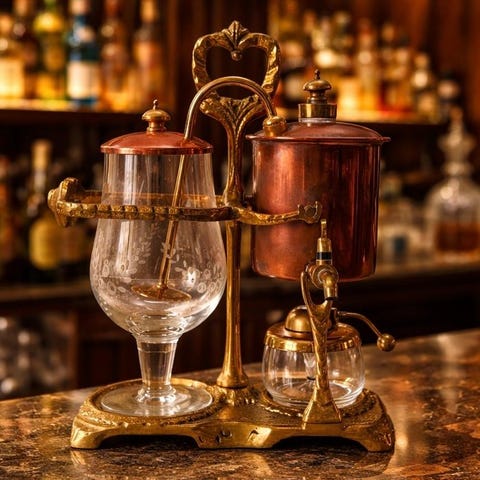 Meget smuk designperkolator fra svundne tider. Fotosene taler for sig selv. Noget aflejringspletter, der passer til alderen.