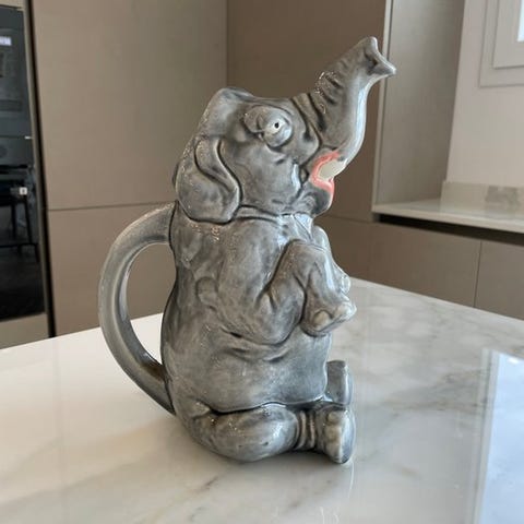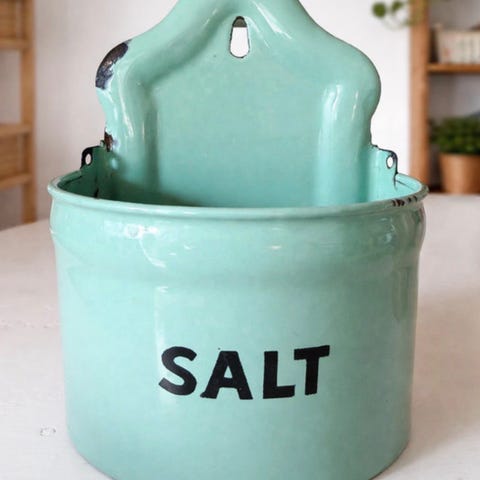 Et eksempel på tidlig fransk køkkenudstyr, der kombinerer praktisk design med en tydelig tidsånd. Den marmor-agtige krop giver stykket et elegant udseende, mens porcelænsbøttene og det metalindførte fuldender den oprindelige ensemble. Undersiden bærer mærket ‘Made in France’, og en af bøtterne er stemplet med Yalacta.