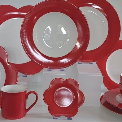 Servicen rummer op til 6 personer. Mønstret blev produceret i årene 1984–1989. Som ses på billederne er: serveringsfade, småskåle og middags tallerkener, sovsekanne, bestik til midten af bordet med keramiske håndtag, der passer til mønsteret i kollektionen. Meget smuk porcelænsservance, værdsat på samlermarkedet – dekorativ genstand i vintage-stil. Standen er meget god – se billederne som beskriver servicen. Pakningen vil være forsvarligt indpakket. Jeg anbefaler.
