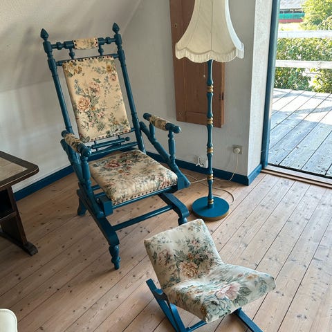 Sortmalet gyngestol med patina. Arvet fra min oldemor så har en del år på bagen. Hyggelig ammestol til børneværelset fx
