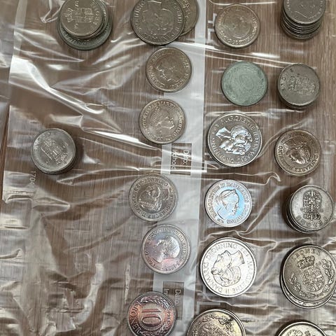 Blandet mønter i plastpose