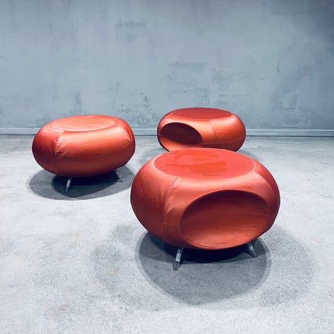 3 stk. Allermuir orange Pebble stol, puf, sidde arrangement.