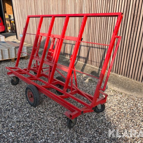 Vogn til transport af gibs- og andre plader. Fremstår brugt men fungere som den skal. Kan vippes til vandret position. Kun afhentning - leveres ikke.