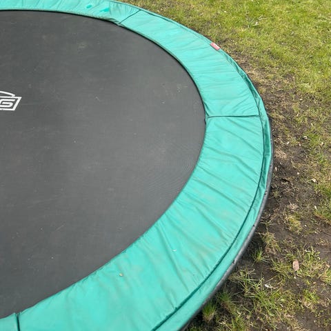 Berg nedgravet trampolin 330 cm med grøn kantpude. Ingen defekter.