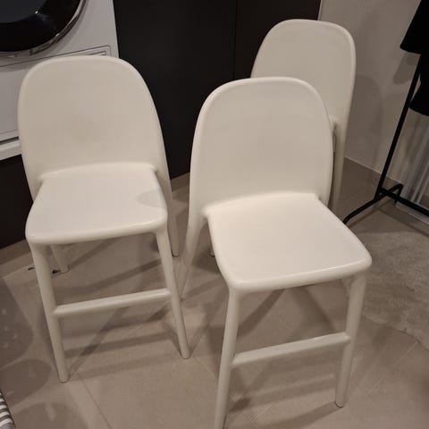 IKEA børnestol med gråt sæde og hvid metalfod. Stolen har formstøbt sæde og ryglæn samt justerbar sædehøjde via hulrør i understellet. Understellet er udført i metal med krydsfod for stabilitet. Velegnet som siddeplads til børn ved skrivebord eller bord i børneværelse eller fællesrum.