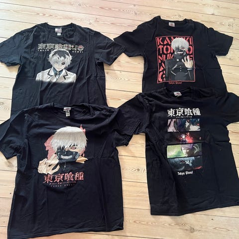 Sort t-shirt med tryk fra Tokyo Ghoul str L. Købt i Faroes Cigar.