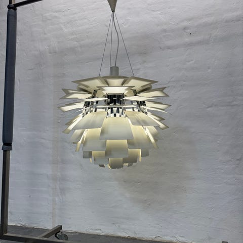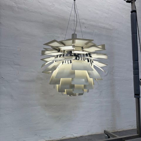 Lampen er designet af Poul Henningsen og produceret hos Louis Poulsen.