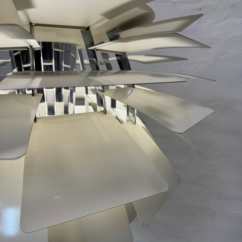 Poul Henningsen Kogle, med stel af forkromet stål og hvide blade.
