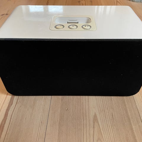 Højttaler, AGK, 10269 - PO. 4666, aktiv, Perfekt, Få glæde af din iPod eller ældre iPhone igen. Lyt til musik, radio eller podcasts fra iPod’en/iPhonen i god lydkvalitet fra denne elegante docking-station i sort piano-lak.