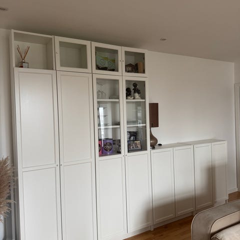 Billy/Oxberg Vitrine fra IKEA i sort egetræsmønster. Andre greb sat på.
